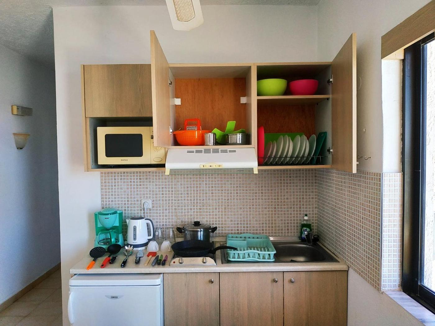 Standard Apartment. Boasting a private entrance, this air-conditioned apartment includes 1 living room, 1 separate bedroom and 1 bathroom with a shower. In the well-equipped kitchen, guests will find a stovetop, a refrigerator, kitchenware and a microwave. Featuring a terrace with garden views, this apartment also offers a wardrobe and a flat-screen TV with satellite channels. The unit has 3 beds. ;