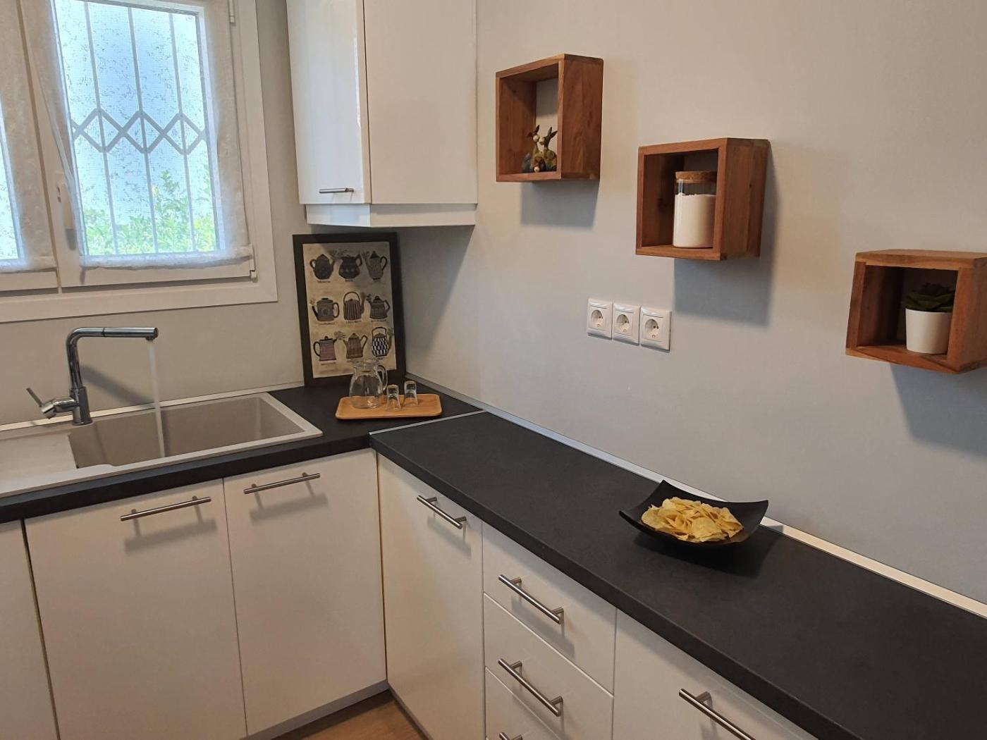 Two-Bedroom House. Boasting a private entrance, this air-conditioned holiday home features 1 living room, 2 separate bedrooms and 1 bathroom with a shower and a hairdryer. Guests will find a stovetop, a refrigerator, kitchenware and an oven in the kitchen. The holiday home also comes with a barbecue. Featuring a terrace with garden views, this holiday home also features a washing machine and a flat-screen TV. The unit has 4 beds.